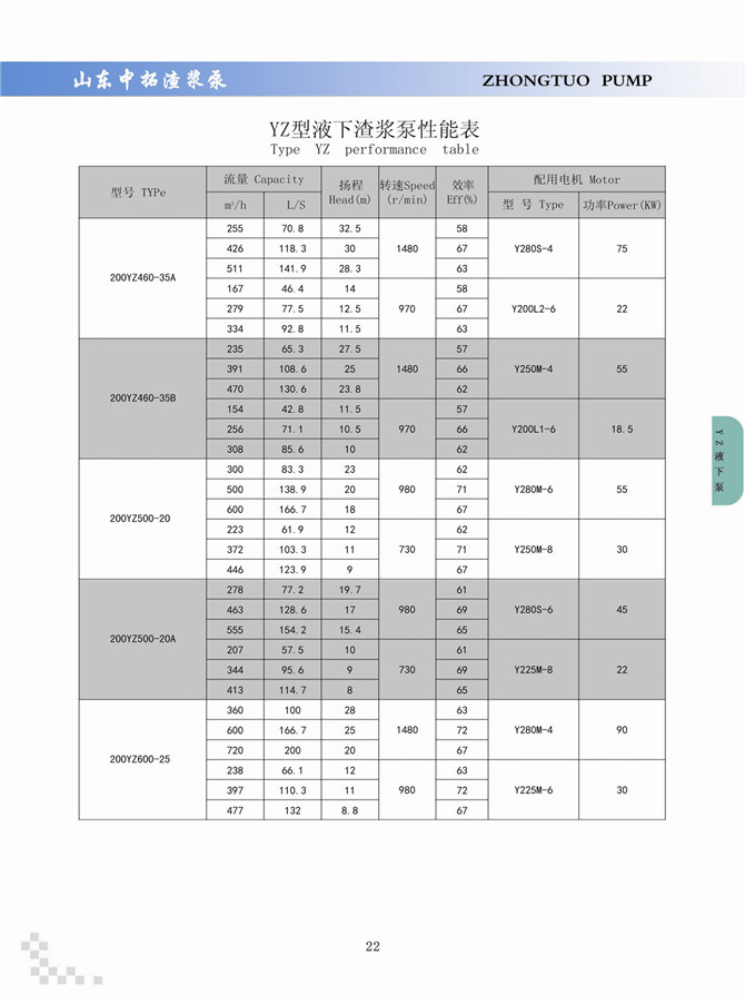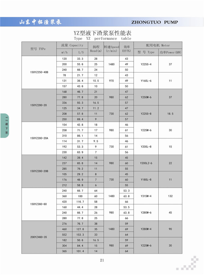 二、規格型号 例(li)80YS80-2.0MYS-液下重型砂漿(jiāng)泵 80-泵的出口直(zhi)徑(mm)80-泵的設計點(diǎn)流量🙇🏻(m3/h)2.0M-液下深度(dù)2000mm4、泵的傳動方式(shì):泵通過彈性聯(lian)軸器與電動機(jī)連接,從原動機(jī)方向看泵為順(shùn)時針方向旋🥵轉(zhuan)。
